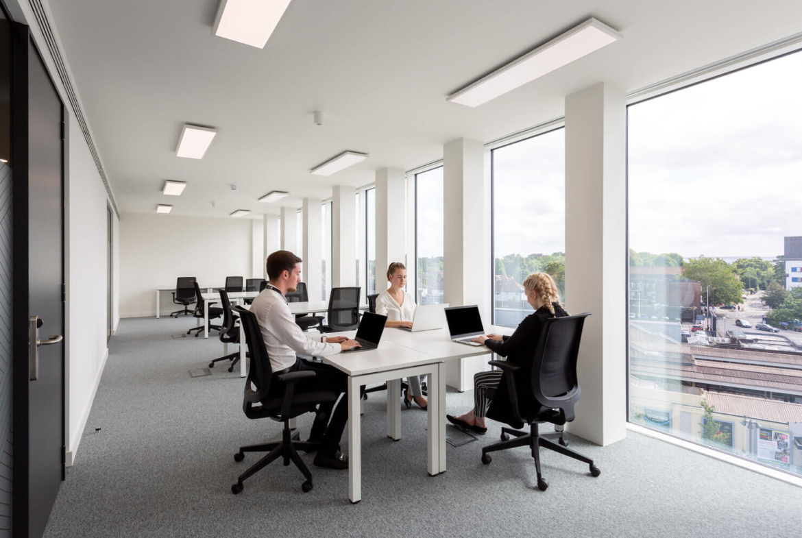 Office space in Woking is available on flexible terms. This business centre has 111 private offices and 40 coworking desk. You’ll have swift access to central London, 25 minutes away via South West Trains, as well as a host of the town’s finest restaurants, cafés, banks and hotels.